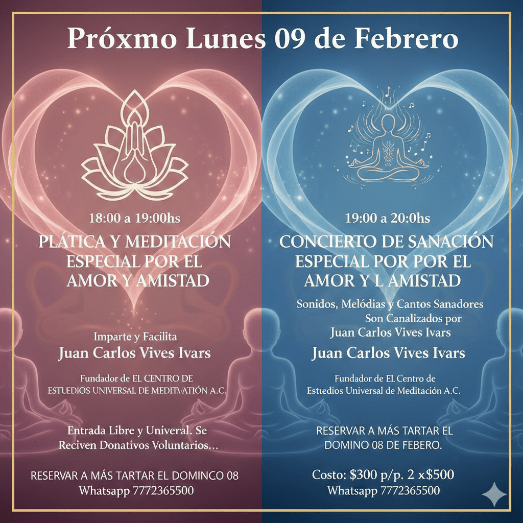 Es Importantísimo Impulsar tus Relaciones Humanas en Amor y Amistad Desde Adentro con Estas Claves. Aprender, Sanar Multidimensionalmente, Convivir con Amigos y Amigas de la Meditación conocidos, desconocidos, Iniciados y no Iniciados. Con o Sin Experiencia. Vibrando Juntos Con la Energía, La Luz, El Amor y La Sabiduría del Universo. Para Revisar, Resignificar, Limpiar, Transformar, Agradecer , Bendecir y Perdonar. Y Así Encauzar, Reorientar, Liberar. Y Construir Lazos Perennes. Aplicando estas Claves tan Necesarias para que seas el Artifice de tu Vida, Sentido y Propósito Junto con todas tus Relaciones. Y la Comunidad Universal.