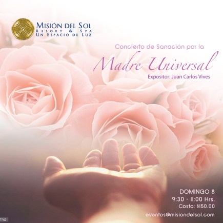 Domingo 08 de Mayo de 9:30 a 11:00hs.»CONCIERTO DE SANACIÓN, ESPECIAL POR LA MADRE UNIVERSAL», Con el Sonido y la Voz Sanadora de Juan Carlos Vives Ivars. en el Hotel Spá Misión del Sol.Cuernavaca.Jiutepec.Morelos.