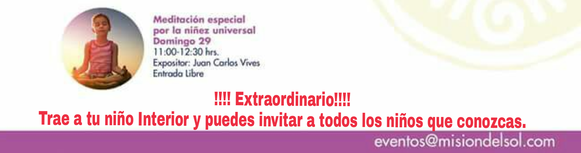 !!!! ATENCIÓN!!!! Este domingo 29 de Abril la Meditación Será muy especial. Invita a todos los niños y adultos que conozcas. Infinitas gracias y bendiciones Eternas.