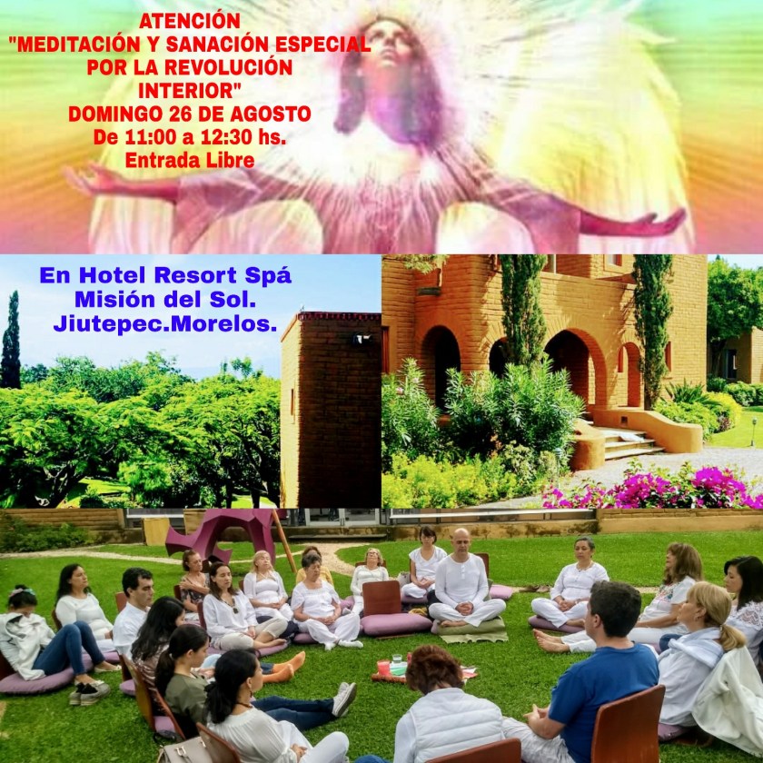 !!!Y RECUERDA SEGUIMOS!!! Domingo 26 de AGOSTO de 11:00 a 12:30hs. Habrá «MEDITACIÓN Y SANACIÓN MUY ESPECI AL POR LA REVOLUCIÓN INTERIOR» en El Hotel Misión del Sol. Jiutepec. Morelos.ENTRADA LIBRE. Se sugiere donat ivo Voluntario. DIFÚNDELO Y TE ESPERAM…