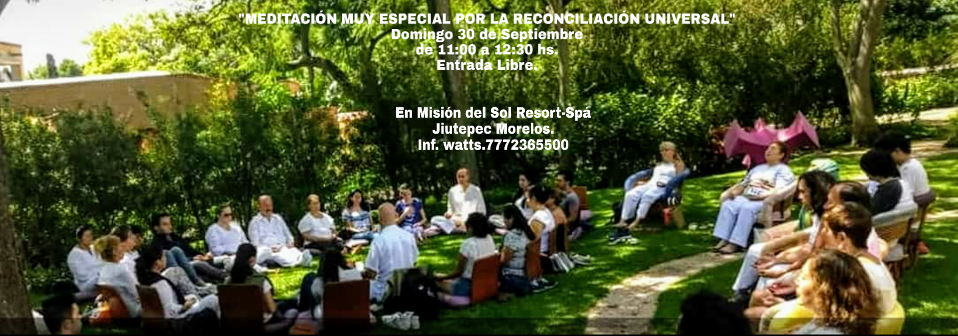 !!! ATENCIÓN MUY ESPECIAL!!! DOMINGO 30 de Septiembre de 11:00 a 12:30hs. Habrá «MEDITACIÓN Y SANACIÓN M UY ESPECIAL POR LA RECONCILIACIÓN UNIVERSAL» en El Hotel Misión del Sol. Jiutepec. Morelos.ENTRADA LIBRE. Se sugiere donativo Voluntario. DIFÚNDELO …
