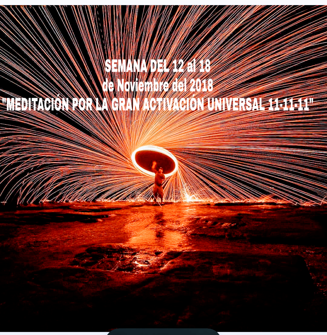 Y!!!! ATENCIÓN!!!! Mañana Jueves 15 de NOVIEMBRE nos toca la "MEDITACIÓN Y SANACIÓN ESPECIAL POR LA GRAN ACTIVACIÓN UNIVERSAL 11-11" en dos lugares correspondientes, en la mañana a las 9:30 en el grupo de "PIROUETT"en Saturno n•9 Jardines de Cuernavaca y a las 17:00 en el grupo del CLUB LEONES, en Av. MORELOS Sur 148 Col.Las Palmas. Cuernavaca. Entrada Libre. DIFÚNDELO, INVITA y los esperamos Universalmente.