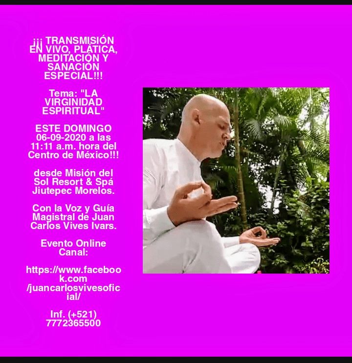 ¡¡¡ TRANSMISIÓN EN VIVO, PLÁTICA, MEDITACIÓN Y SANACIÓN MUY ESPECIAL!!!Tema: «LA VIRGINIDAD ESPIRITUAL» ESTE DOMINGO 06-09-2020 a las 11:11 a.m. hora del Centro de México!!!