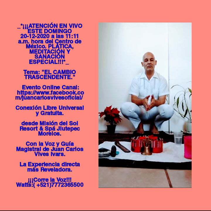 ¡¡¡ATENCIÓN EN VIVO ESTE DOMINGO 20-12-2020 a las 11:11 a.m. hora del Centro de México. PLÁTICA, MEDITACIÓN Y SANACIÓN ESPECIAL!!! Tema: «EL CAMBIO TRASCENDENTE.»Evento Online Canal: