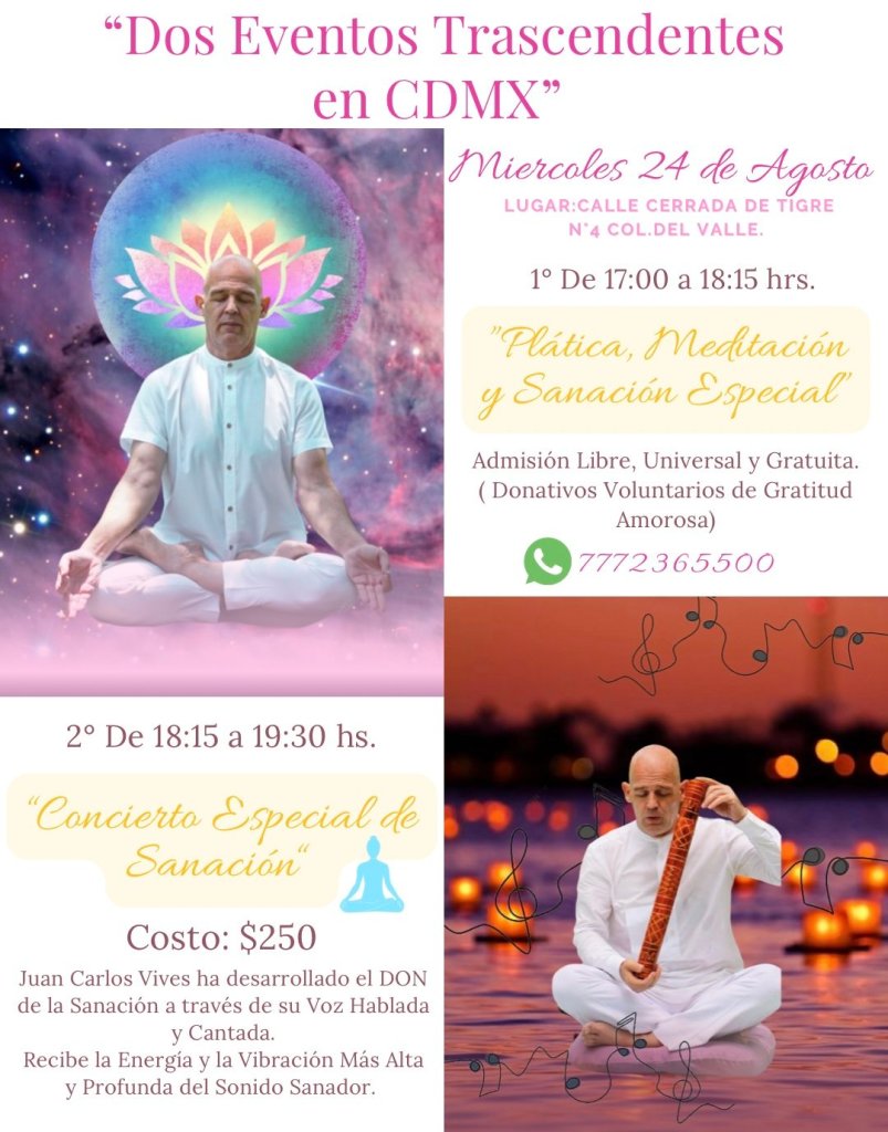 Con la Guía Magistral, la Voz y el Sonido Sanador de Juan Carlos Vives Ivars Fundador de El Centro de Estudios Universal de Meditación A.C.