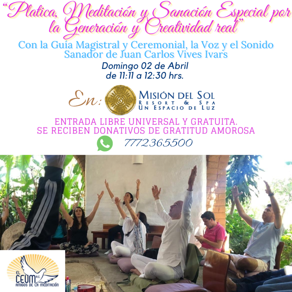 » ATENCIÓN MAÑANA PLÁTICA MEDITACIÓN Y SANACIÓN ESPECIAL POR LA GENERACIÓN Y CREATIVIDAD REAL»Este Domingo 02 de Abril de 11:11 a 12:30hs.Con la Guía Magistral y Ceremonial, la Voz y el Sonido Sanador de Juan Carlos Vives Ivars
