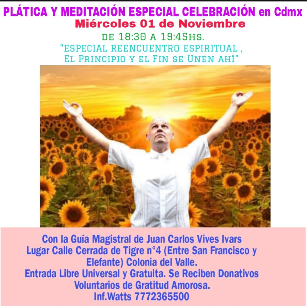 Recuerda que ya mañana será Especial 01 de Noviembre «REENCUENTRO ESPIRITUAL» todos los Miércoles nos toca en la Colonia del Valle, CDMX. A las 18:30hs. Nos vemos todos los que lleguen, difundelo con todos los que se puedan Beneficiar «TALLER VIVENCIAL PERMANENTE DE MEDITACIÓN, EL CAMINO DE TODOS LOS CAMINOS»: https://wp.me/P17S2X-4sm Reencuentroespiritual #meditacion #celebracion