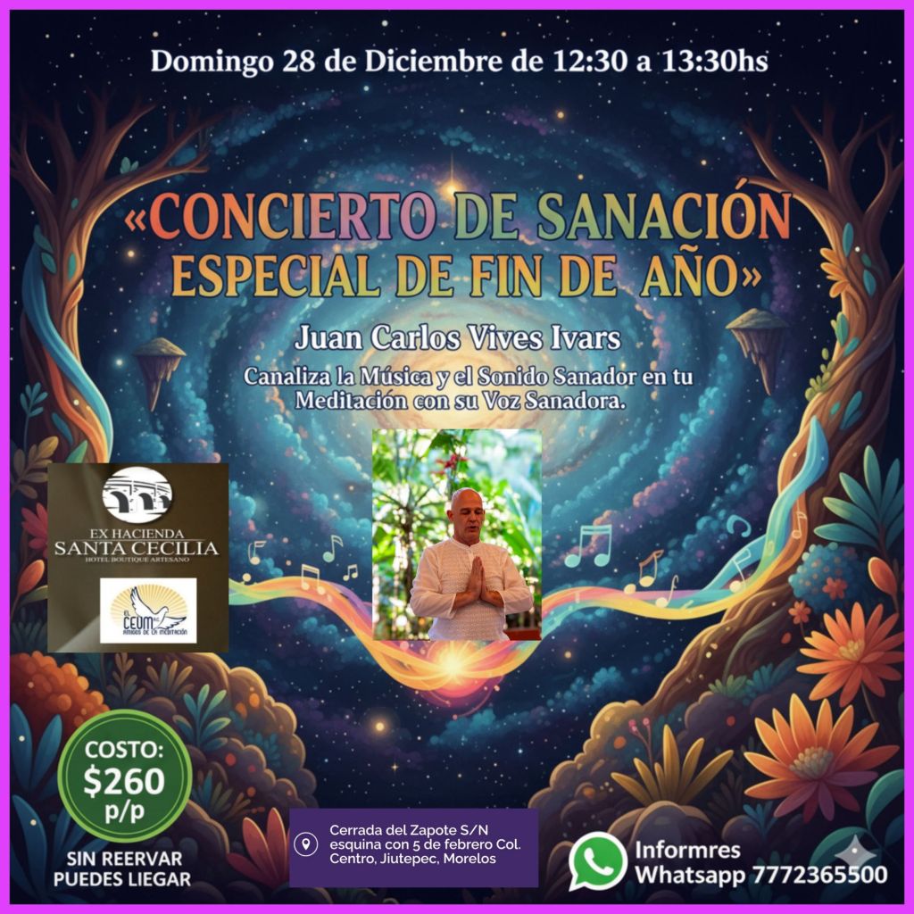 Para Cerrar el Año Vibrando Alto y Profundo, Agradeciendo y Bendiciendo el Año 2025, con La Energía, y el Poder Espiritual de La Meditación y el Sonido Sanador en Tu Meditación. Habrá nuestro Tradicional Brindis Espiritual y Ritual de Sanación del Año Viejo con todos los Participantes, Familias y Amigos…