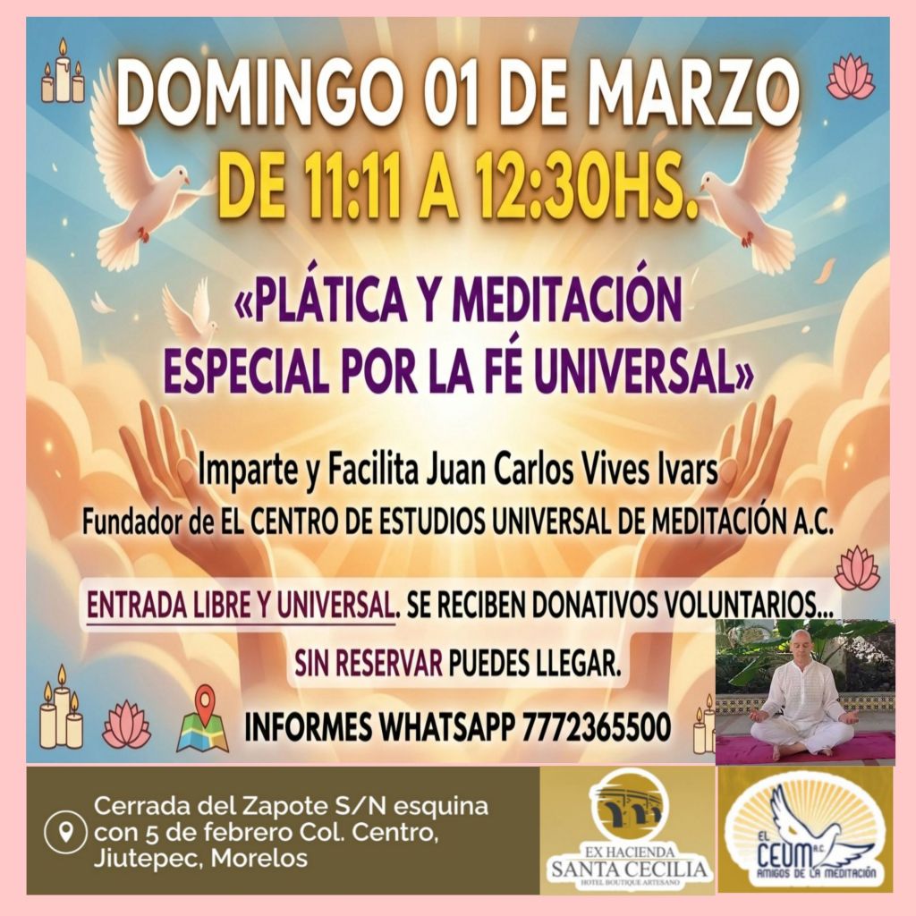 Imparte y Facilita Juan Carlos Vives Ivars Fundador de EL CENTRO DE ESTUDIOS UNIVERSAL DE MEDITACIÓN A.C.