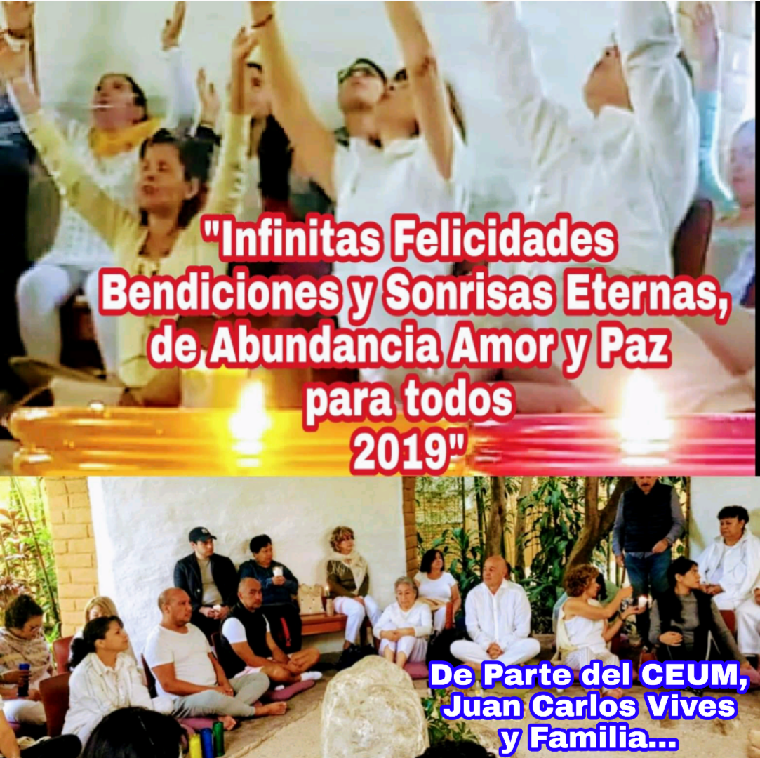 Queridos Amigos de la Meditación del CEUM, Les Recuerdo que hasta el Domingo 06 de Enero Iniciamos Actividades de Año Nuevo en todos los grupos del Directorio de Meditación con la «MEDITACIÓN ESPECIAL DE AÑO NUEVO» Está semana seguimos en Receso Unidos por la Meditación… Infinitas Felicidades y Bendiciones Eternas de Año Nuevo para todos.»MOMENTO PRESENTE, MOMENTO FELIZ»