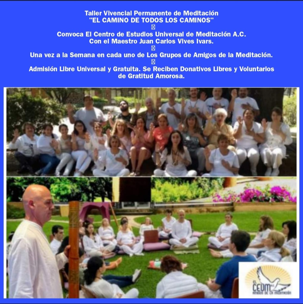 EL CENTRO DE ESTUDIOS UNIVERSAL DE MEDITACIÓN EN ACCIÓN. Juan Carlos Vives Ivars y tus Amigos de la Meditación. Inscríbete a nuestra Página Web: jcvives.com Informes por WhatsApp. Cel. 7772365500