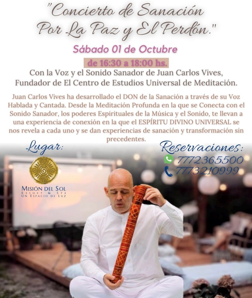 Con la Voz Sanadora y la Guia Magistral de Juan Carlos Vives Ivars Fundador de El Centro de Estudios Universal de Meditación. No te lo Pierdas.