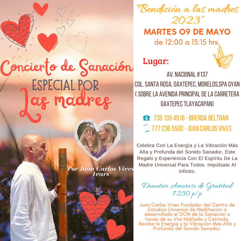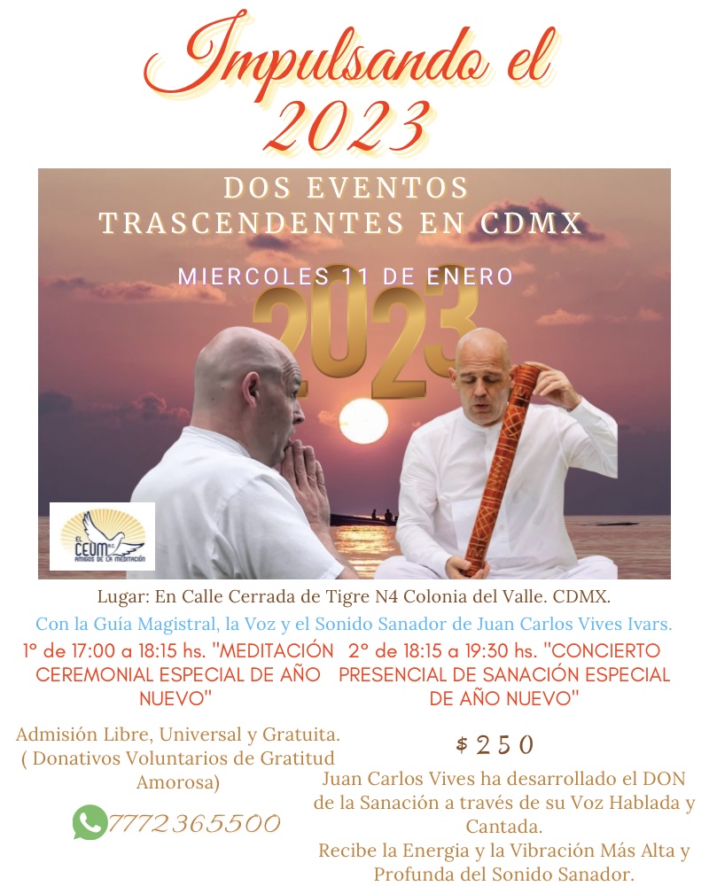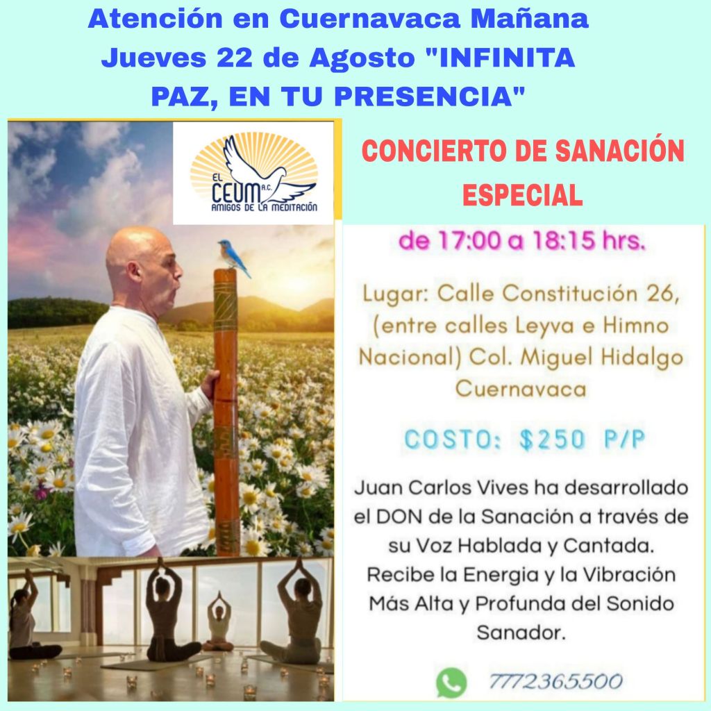 Con la Guía Magistral, la Voz y el Sonido Sanador de Juan Carlos Vives Ivars Fundador de El Centro de Estudios Universal de Meditación A.C.