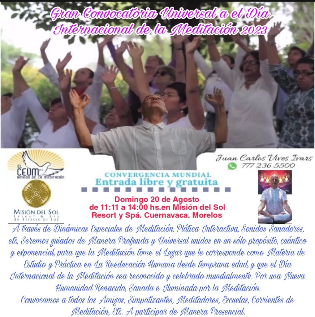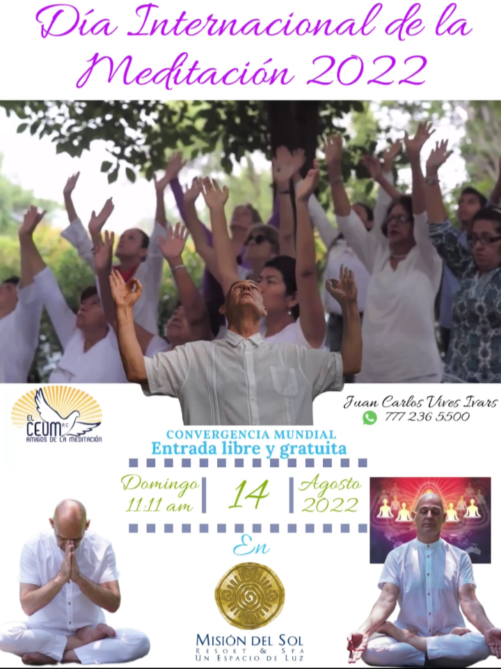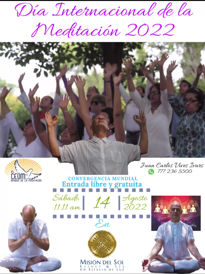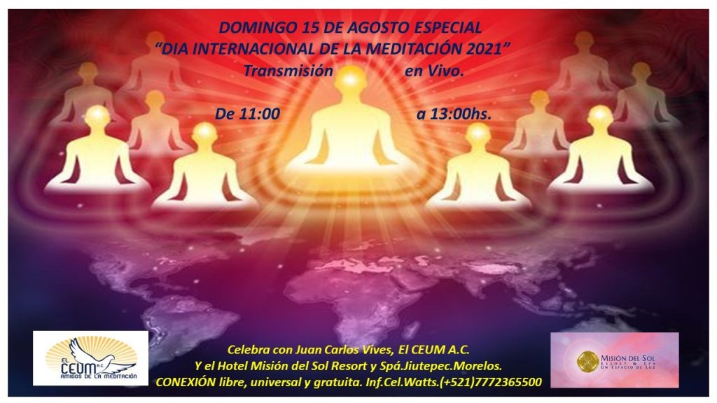 ATENCIÓN DÍA INTERNACIONAL DE LA MEDITACIÓN 2021. Domingo 15 de Agosto. TRANSMISIÓN EN VIVO, PLÁTICA, CONCIERTO Y MEDITACIÓN ESPECIAL. con la Voz Sanadora y Guía de Juan Carlos Vives Ivars desde Misión del Sol Resort y Spá Jiutepec Morelos.