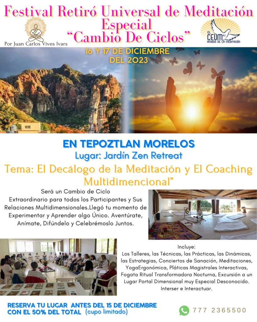 ¡¡¡¡ENFÓCATE EN LO IMPORTANTE, ANÍMATE Y AVENTURATE!!!!FESTIVAL RETIRO UNIVERSAL DE MEDITACIÓN.INVIERNO 2020.Marzo 07 y 08. Ahuatepec. Cuernavaca. Morelos.México.TEMA:” EL DECÁLOGO DE LA MEDITACIÓN, Y EL DISFRUTE REAL DEL SER Y ESTAR FELIZ.”Información completa.