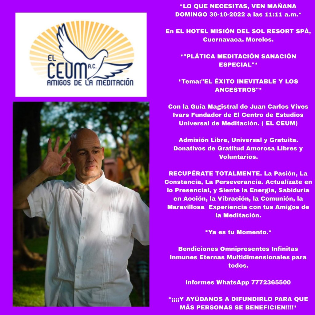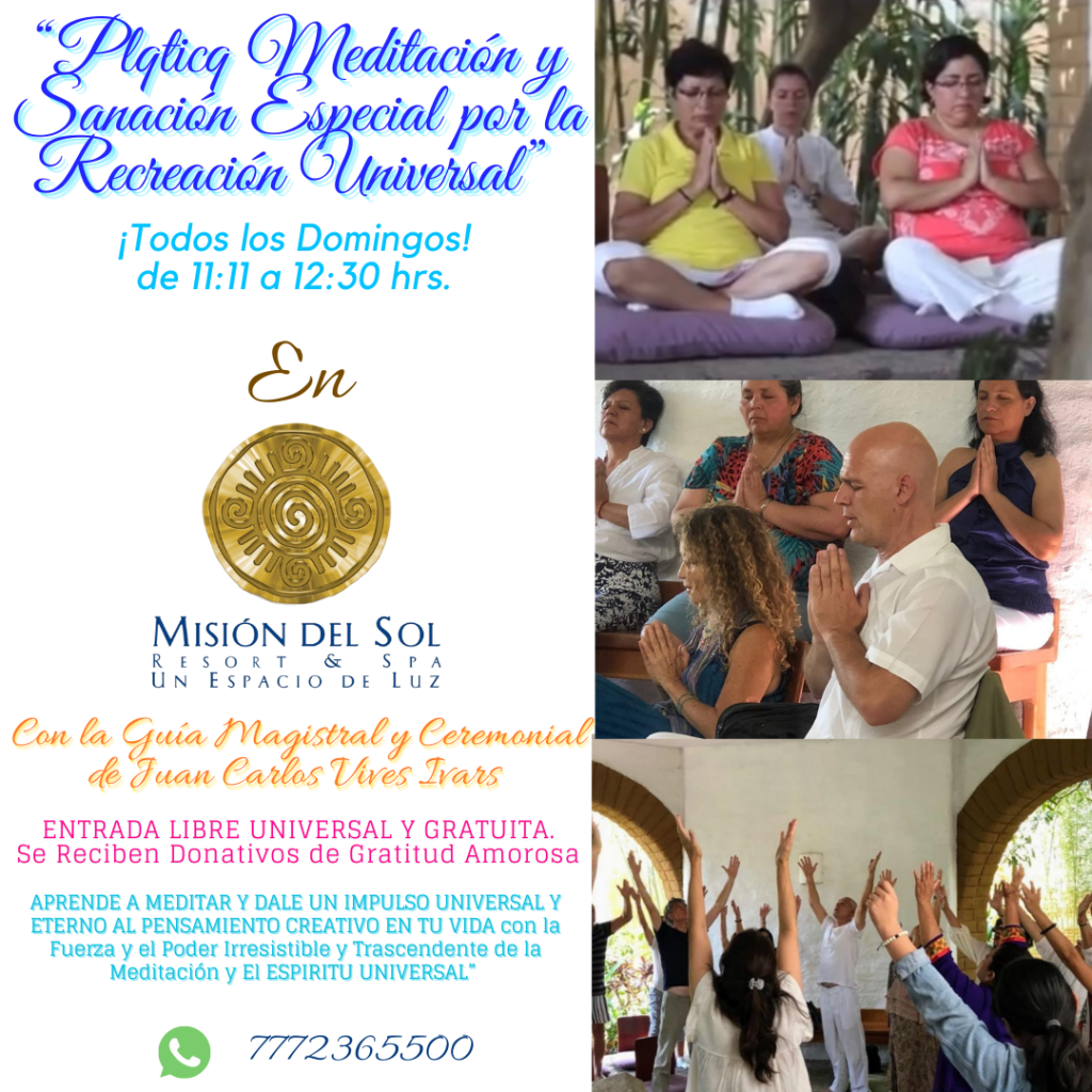 Con la Guía Magistral de Juan Carlos Vives Ivars Fundador de El Centro de Estudios Universal de Meditación. ( EL CEUM) En EL HOTEL MISIÓN DEL SOL RESORT SPÁ, Jiutepec Morelos.