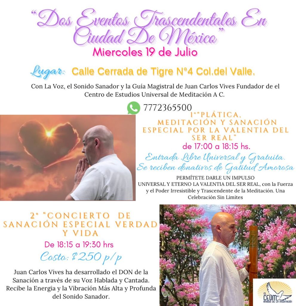 Con la Guía Magistral y Ceremonial, la Voz y el Sonido Sanador de Juan Carlos Vives Ivars Fundador de El Centro de Estudios Universal de Meditación A.C.
