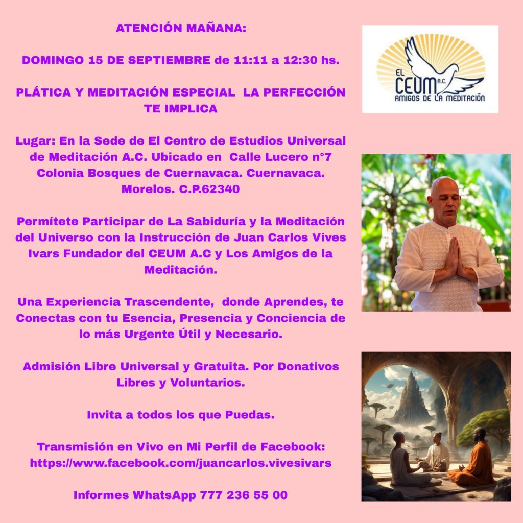 Permítete Participar de La Sabiduría y la Meditación del Universo con la Instrucción de Juan Carlos Vives Ivars Fundador del CEUM A.C y Los Amigos de la Meditación.
