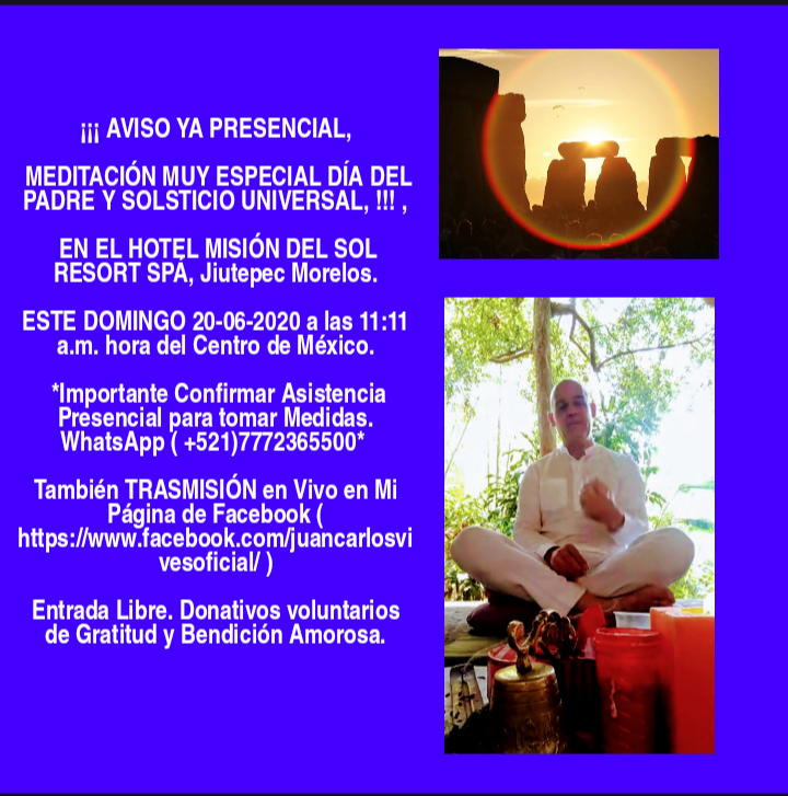 ATENCIÓN Audios de Meditación Oportuna Diaria de 30 minutos con El Maestro Juan Carlos Vives. Informes WhatsApp 7772365500.