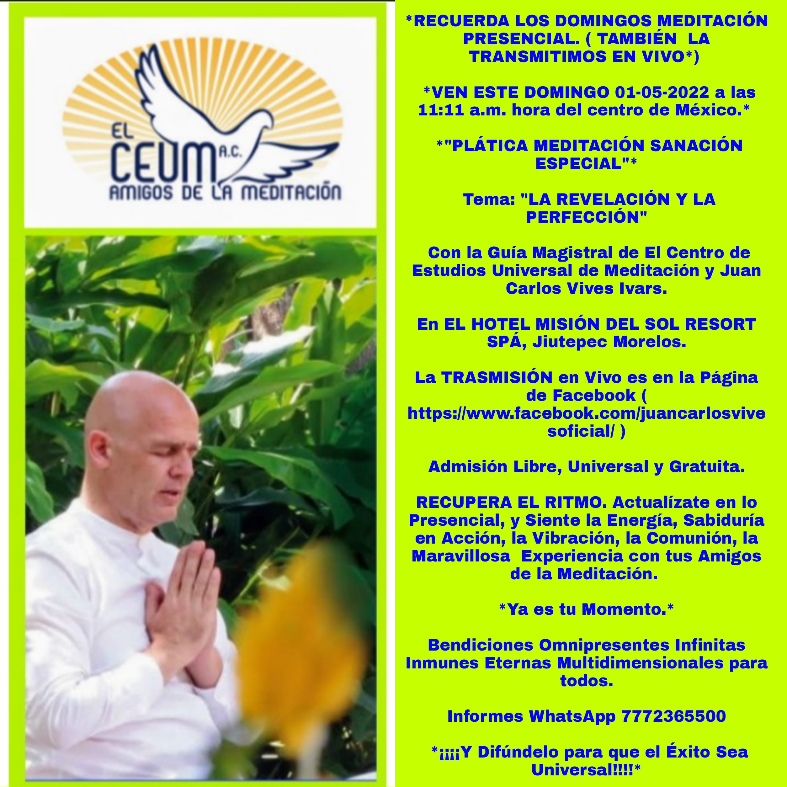 Con la Guía Magistral de Juan Carlos Vives Ivars Fundador de El Centro de Estudios Universal de Meditación.