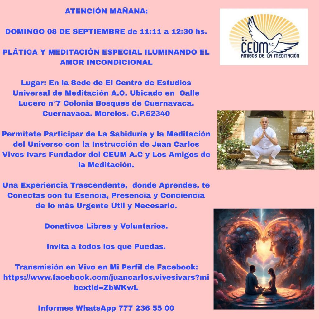 PLÁTICA Y MEDITACIÓN ESPECIAL ILUMINANDO EL AMOR INCONDICIONAL