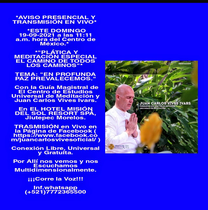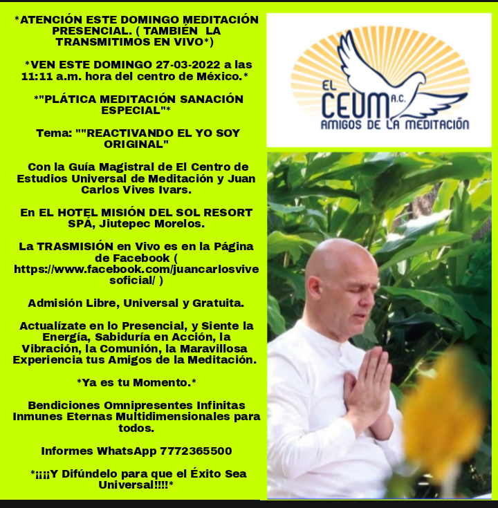Con la Guía Magistral de El Centro de Estudios Universal de Meditación y Juan Carlos Vives Ivars.