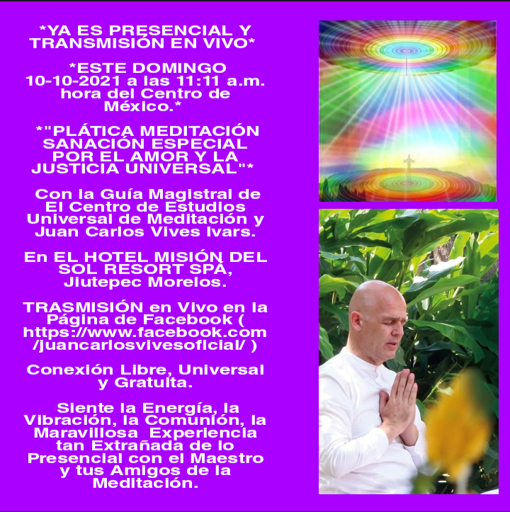 Siente la Energía, la Vibración, la Comunión, la Maravillosa Experiencia tan Extrañada de lo Presencial con el Maestro y tus Amigos de la Meditación.