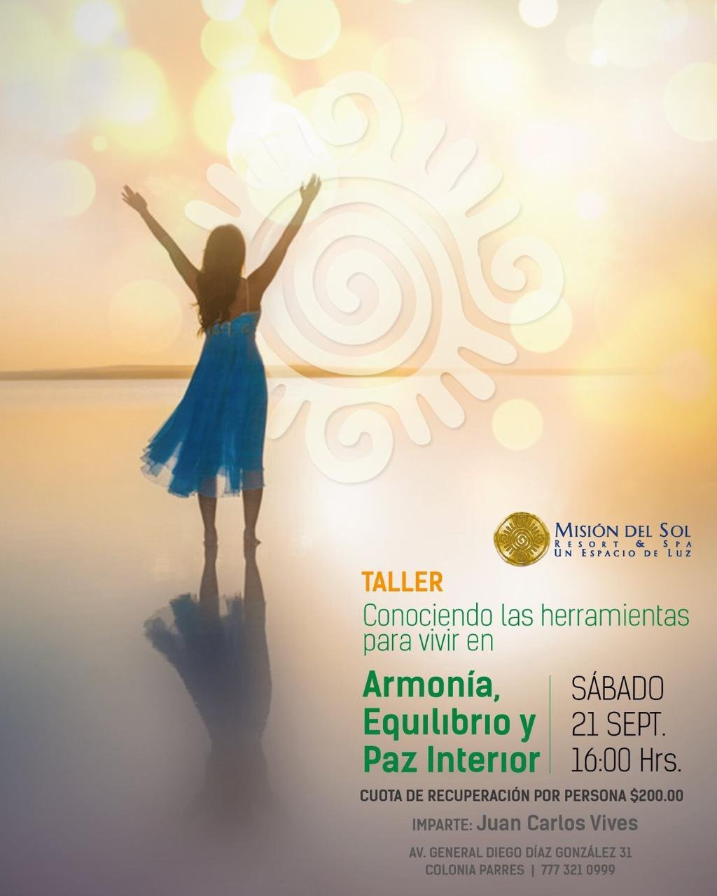 Sábado 21 de Septiembre de 16:00 a 18:00hs. Taller Especial Día Internacional de la Paz 2019 » CONOCIENDO LAS HERRAMIENTAS PARA VIVIR EN ARMONÍA, EQUILIBRIO Y PAZ INTERIOR» Clase Magistral con Juan Carlos Vives . Autor y Maestro Fundador de EL CEUM A.C. Amigos de la Meditación. Costo: $200 p/p.