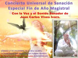 Domingo 08 de Mayo de 9:30 a 11:00hs.»CONCIERTO DE SANACIÓN, ESPECIAL POR LA MADRE UNIVERSAL», Con el Sonido y la Voz Sanadora de Juan Carlos Vives Ivars. en el Hotel Spá Misión del Sol.Cuernavaca.Jiutepec.Morelos.
