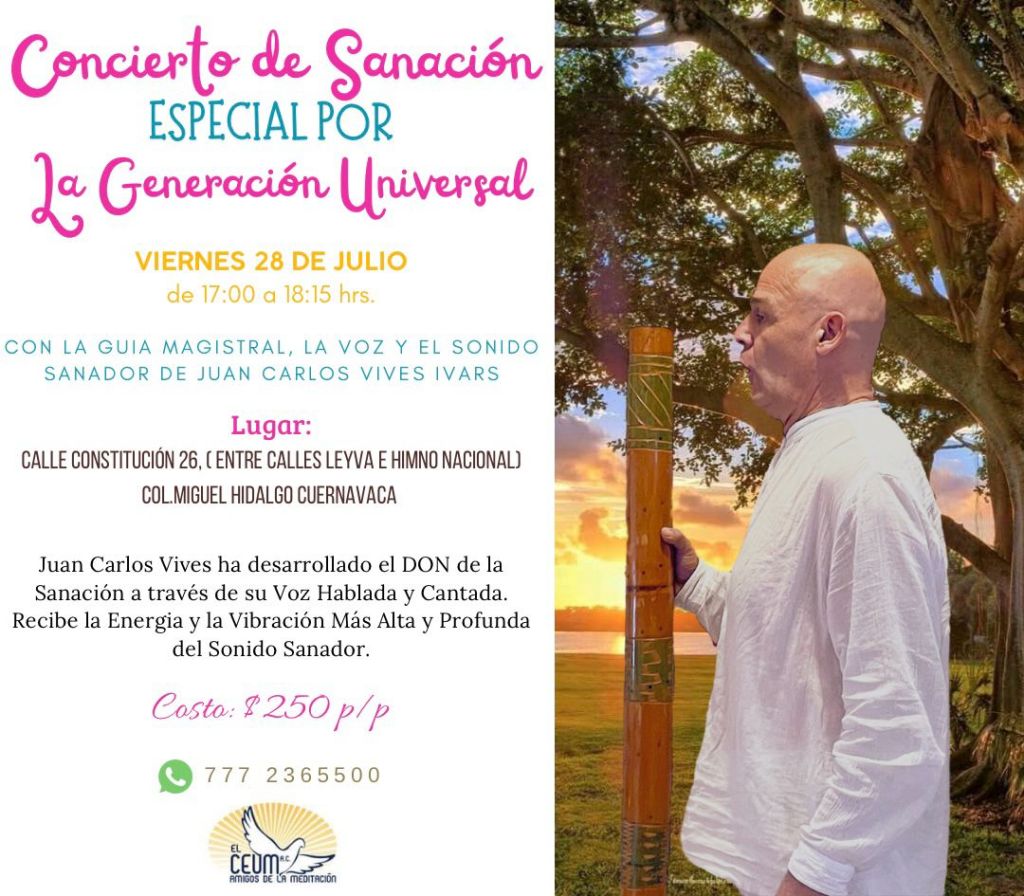 Con la Voz y El Sonido Sanador de Juan Carlos Vives Ivars. Fundador de El Centro de Estudios Universal de Meditación A.C.