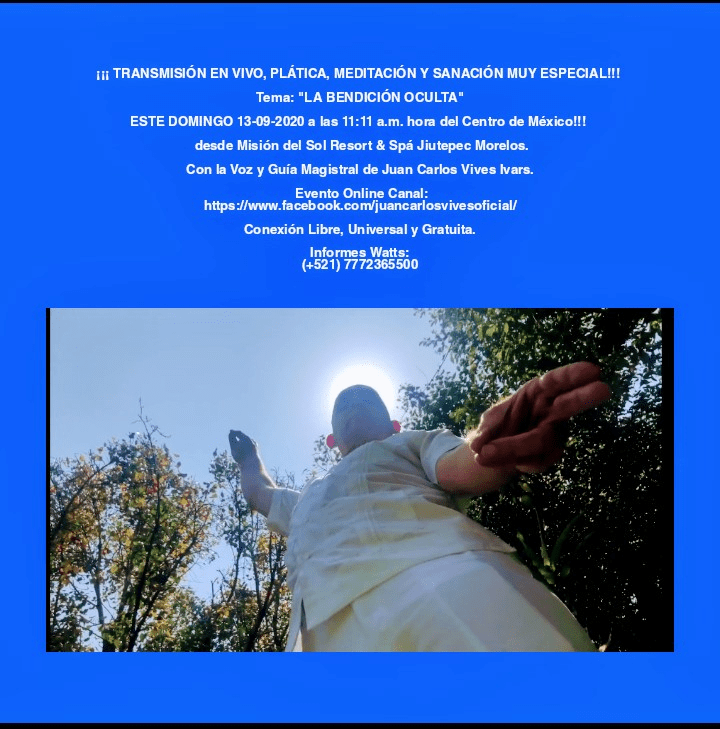 ¡¡¡ TRANSMISIÓN EN VIVO, PLÁTICA, MEDITACIÓN Y SANACIÓN MUY ESPECIAL!!! Tema: «LA BENDICIÓN OCULTA» ESTE DOMINGO 13-09-2020 a las 11:11 a.m. hora del Centro de México!!!