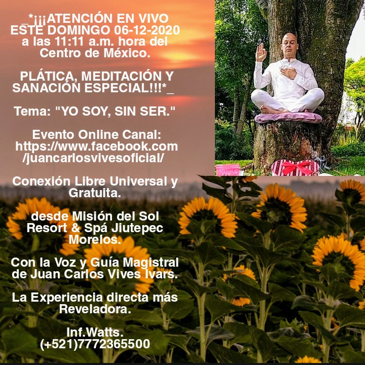 ¡¡¡ATENCIÓN TRANSMISIÓN EN VIVO ESTE DOMINGO 06-12-2020 a las 11:11 a.m. hora del Centro de México. PLÁTICA, MEDITACIÓN Y SANACIÓN ESPECIAL!!!
