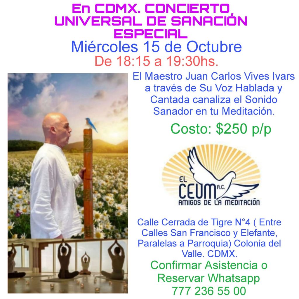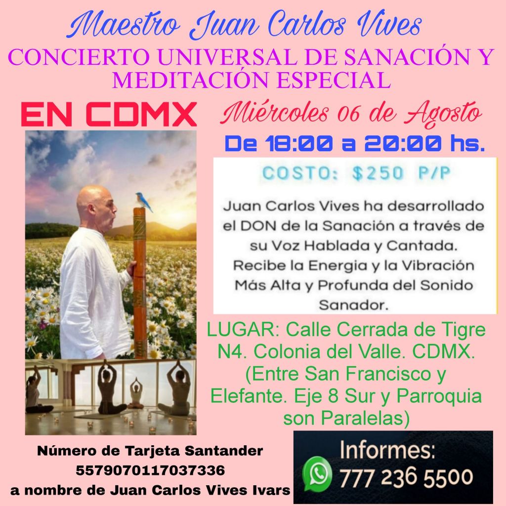 Juan Carlos Vives Ivars Fundador de EL CENTRO DE ESTUDIOS UNIVERSAL DE MEDITACIÓN A.C. Canaliza la Música y el Sonido Sanador en tu Meditación con su Voz Sanadora.