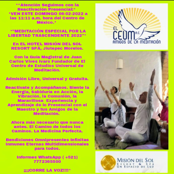 Con La Guía Magistral y Coordinación de Juan Carlos Vives Ivars Fundador de El Centro de Estudios Universal de Meditación A.C. y Los Amigos de la Meditación…