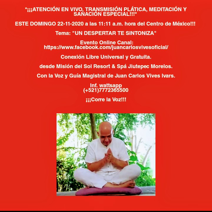 Con la Guía Magistral de Juan Carlos Vives Ivars Fundador de El Centro de Estudios Universal de Meditación. ( EL CEUM) Admisión Libre, Universal y Gratuita. Donativos de Gratitud Amorosa Libres y Voluntarios.
