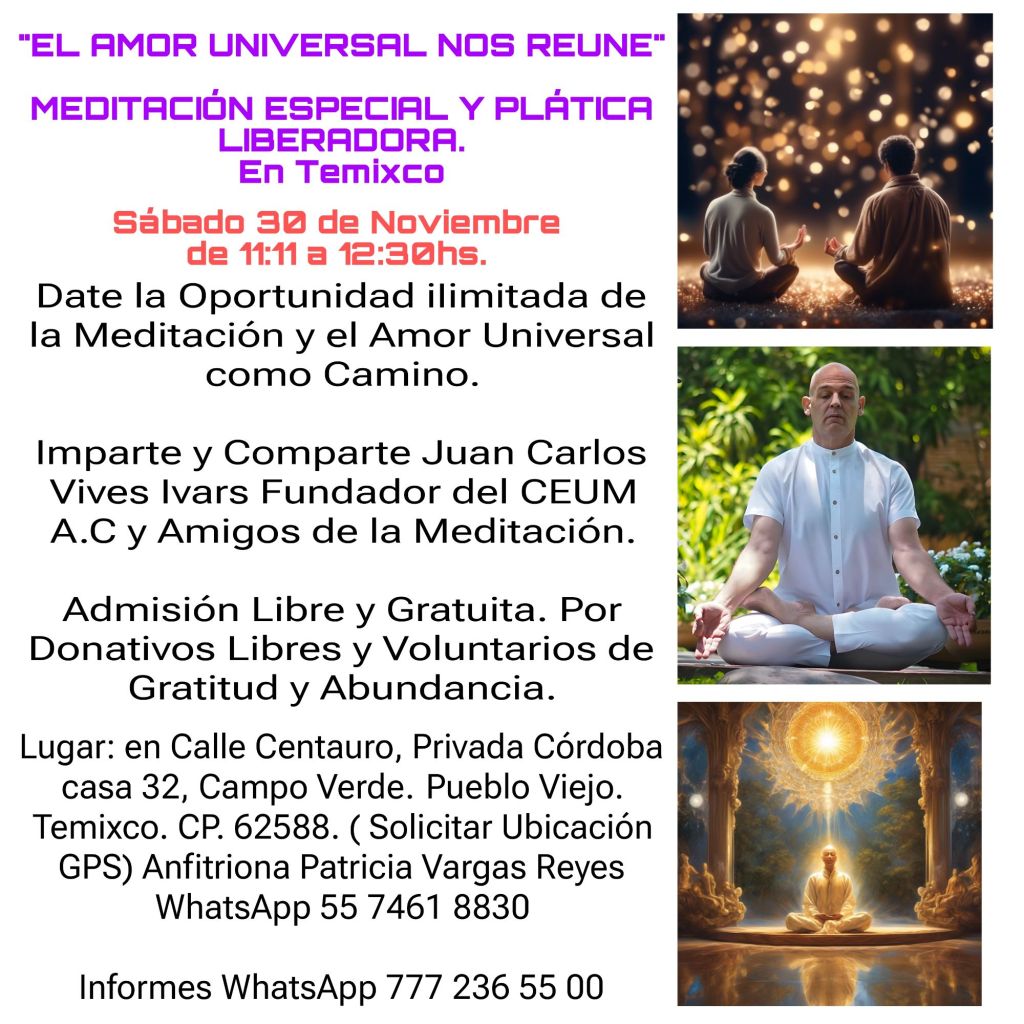Date la Oportunidad Ilimitada de la Meditación y el Amor Universal como Camino. Imparte y Comparte Juan Carlos Vives Ivars Fundador del CEUM A.C y Amigos de la Meditación.