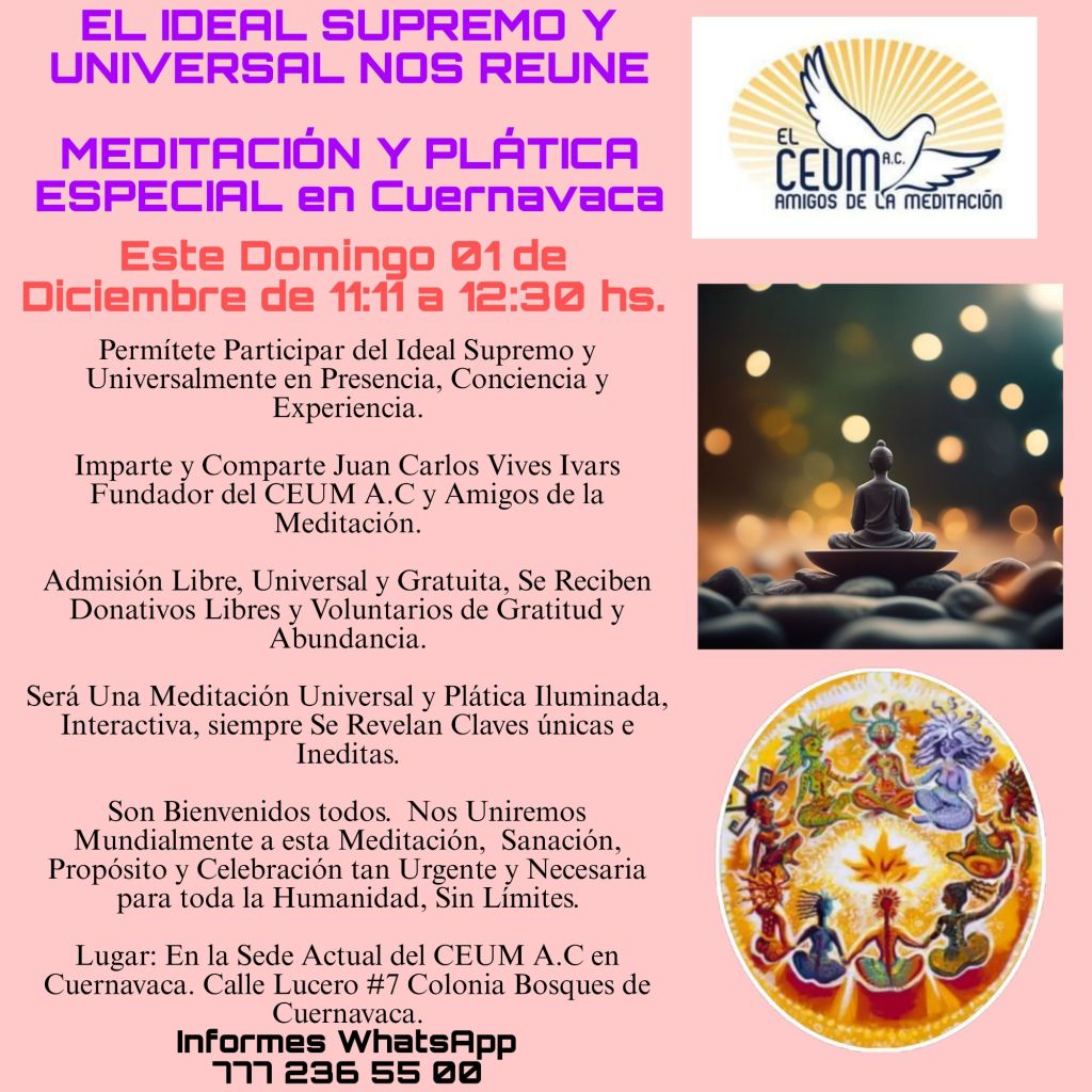EL IDEAL SUPREMO Y UNIVERSAL NOS REUNE MEDITACIÓN Y PLÁTICA ESPECIAL en Cuernavaca