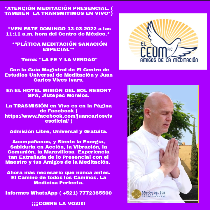 Con la Guía Magistral de Juan Carlos Vives Ivars Fundador de El Centro de Estudios Universal de Meditación.