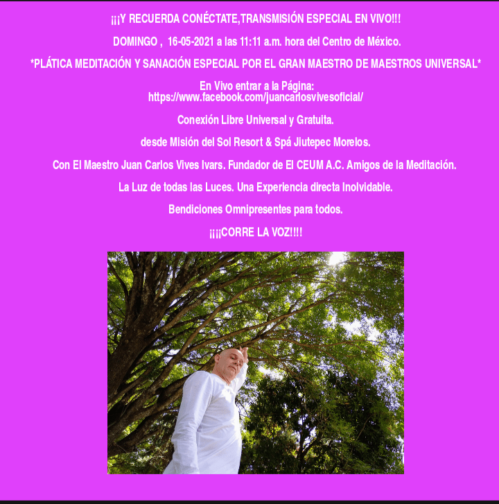 También etiquetado en #Disfrutar, #JuanCarlosVivesIvars, #Sinstress, #Sinsufrir, amor, espiritualidad, Felicidad, Libertad, Meditación, paz, sabiduría, SALUD, SANACIÓN, vídeos de Meditación, VIDEOS PARA MEDITAR.